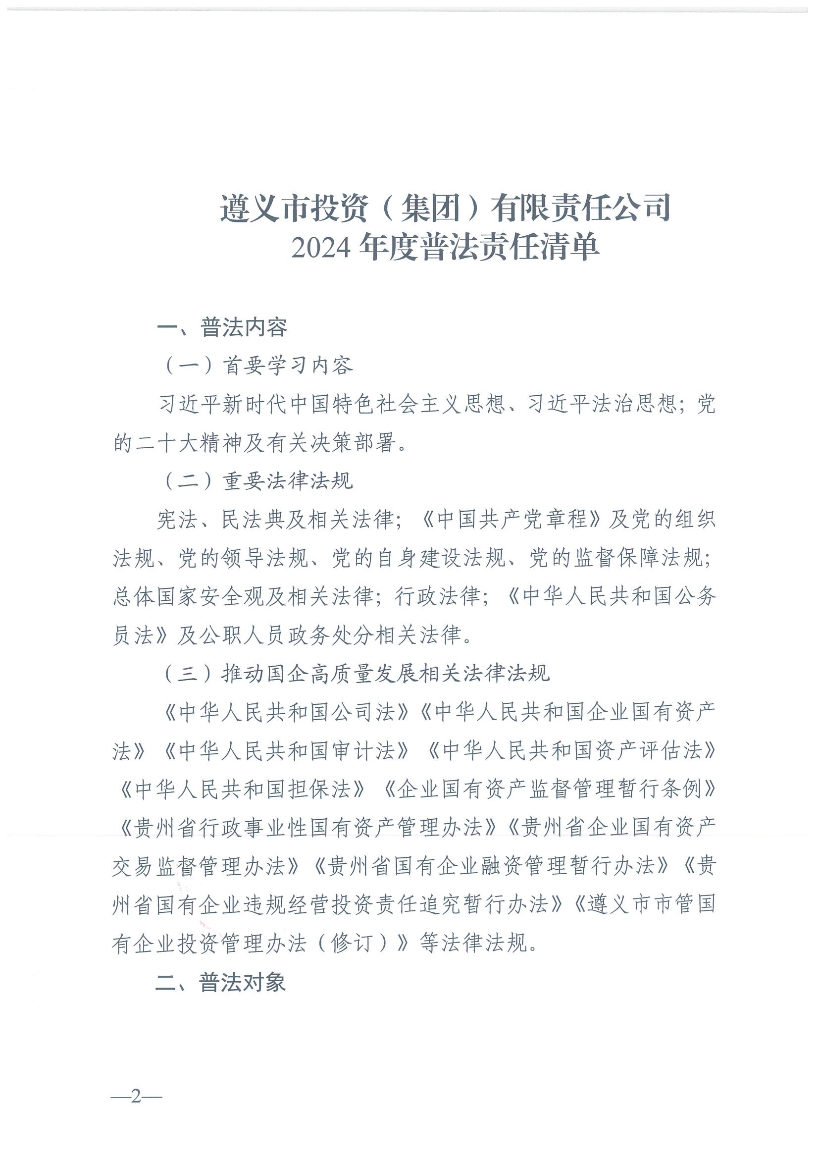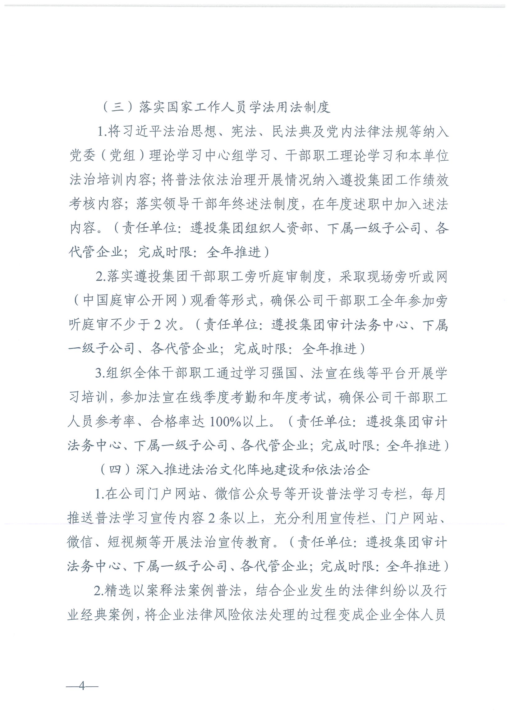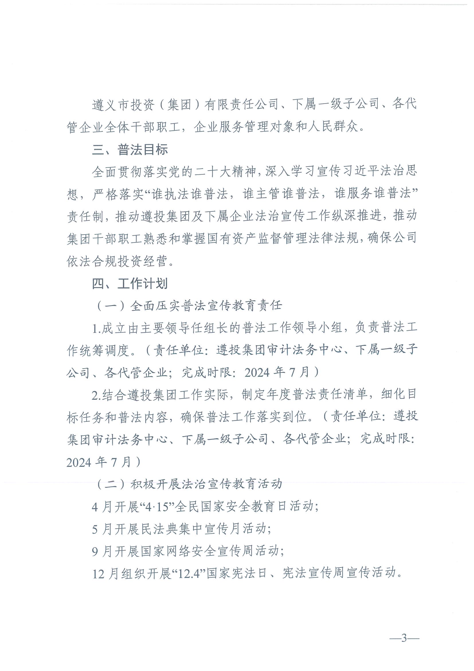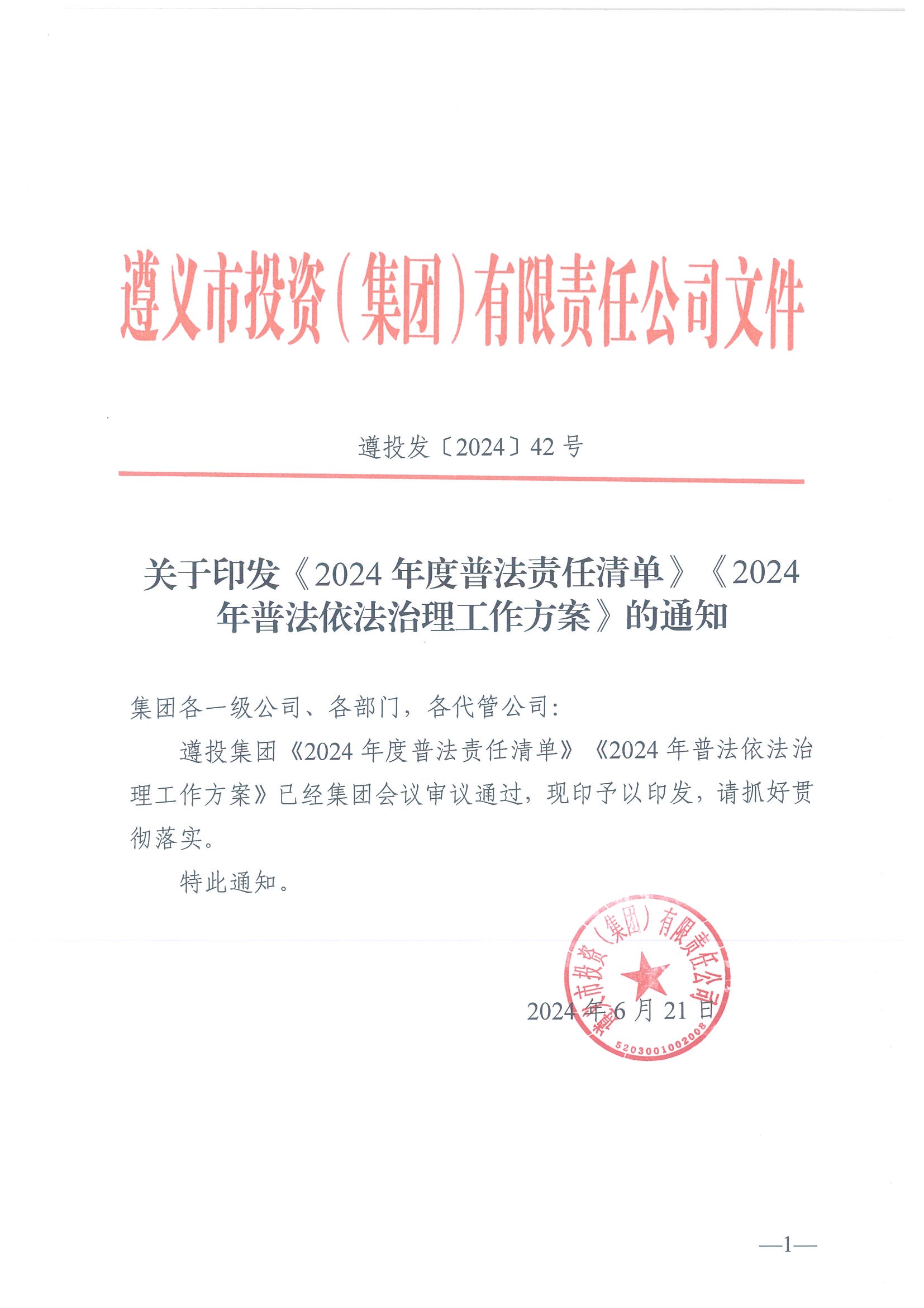 遵投發(fā)〔2024〕42號(hào)?關(guān)于印發(fā)《2024年度普法責(zé)任清單》《2024年普法依法治理工作方案》的通知